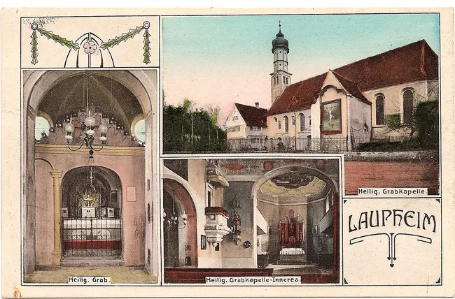 Das links an die Kapelle angebaute Haus war früher die Wohnung des Mesners. Heute ist dort der Haupteingang. Das große Kreuzigungsbild an der Außenwand wurde 1933 durch ein Marienbild ersetzt („Unsere liebe Frau an der Straß“).