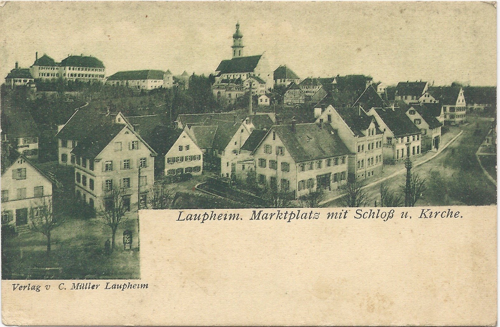 Laupheim. Marktplatz mit Schloß u. Kirche