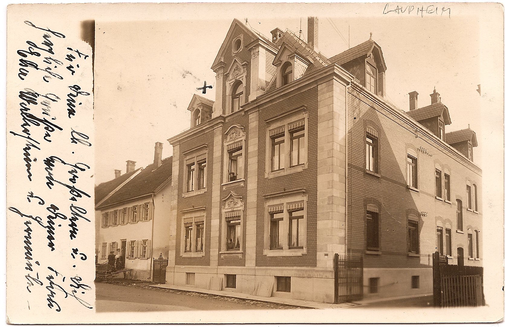 Diese schön gestaltete Wohnhaus in der Radstraße gehörte einst dem jüdischen Fabrikanten Bergmann. An die Rückseite des Hause schloss sich die ehemalige Haarfabrik an (im 3. Reich „arisiert“, nach dem Krieg: Neubau in der Erwin-Rentschler-Straße / Bergmannstraße).