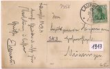 Auf dieser Karte von 1913 in dem ungewöhnlichen Hochformat ist das Schloss Kleinlaupheim abgebildet. Seit 1845 war Laupheim Oberamt, und der Sitz der Verwaltung und des Gerichts war das Schloss.