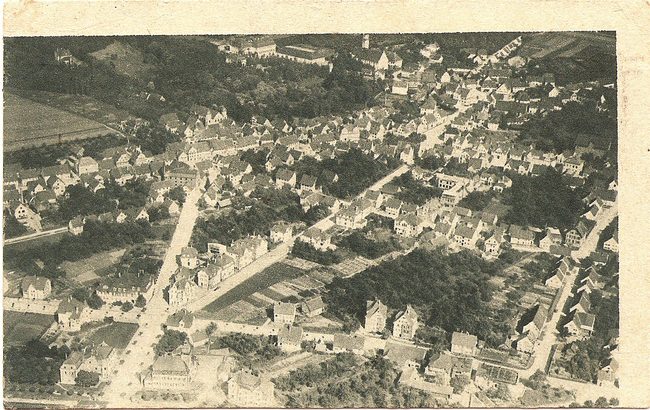 - oben Mitte: Schloss Großlaupheim und Stadtpfarrkirche