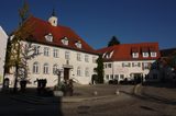 Laupheim, Oberer Marktplatz mit Markthalle ( Landwirtschaftsschule)