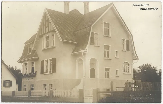 Dieses architektonisch interessante Haus steht in unmittelbarer Nachbarschaft zum ehemaligen Restaurant zum Stadtbahnhof. Bis auf den Eingangsbereich wurde bei der Renovation äußerlich wenig verändert. Auf der Karte steht "Ulmerstr.30.", inzwischen hat das Gebäude die Nummer 35 erhalten. März 2015 Manfred Schwarz