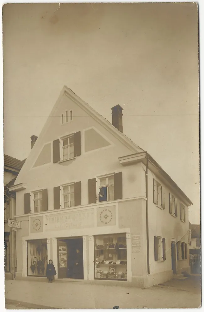 In den zwanziger Jahren zog das Schirmgeschäft Kienzle von der Kapellenstraße 54 ins Zentrum Laupheims (Mittelstraße 59). Das Sortiment wurde erweitert, neu hinzu kamen Tabakwaren.