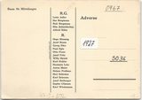 Auf der Rückseite stehen "R.G." für Realgymnasium und "R" für Realschule, darunter die Namen der Abschlussschüler. "Adler/Bergmann" sind typische Namen von jüdischen Mitbürgern aus Laupheim.