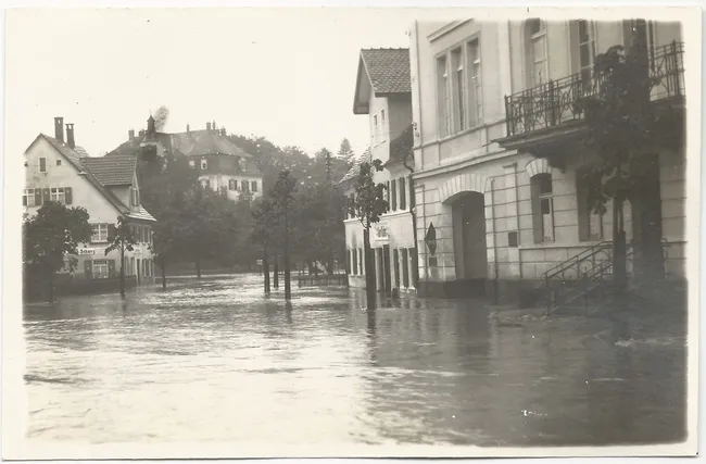 Der Fotograf stand an der Einmündung der Mittelstraße in die Biberacher Straße. Rechts ist das stattliche Gebäude der "Germania" zu sehen und direkt anschließend die Metzgerei von Karl Kohn.