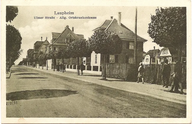 Hinter dem Zaum war die „Wies“, ein riesiges Spielparadies für alle Kinder aus der Nachbarschaft (heute: Mehrfamilienhäuser und „Aldi“). Dann kommt das Haus der „Frau Amtmann“, das heute noch äußerlich unverändert ist. Die AOK hatte ihre Geschäftsräume im nächsten Gebäude (zweites Haus von rechts). Am 5. Oktober 1914 war in der örtlichen Presse zu lesen: „Die Allgemeine Ortskrankenkasse befindet sich von jetzt ab im Neubau Ulmer Straße in der Nähe des Stadtbahnhofs/Verwalter Bulacher“ (heute: Tanzschule Gutzmann).