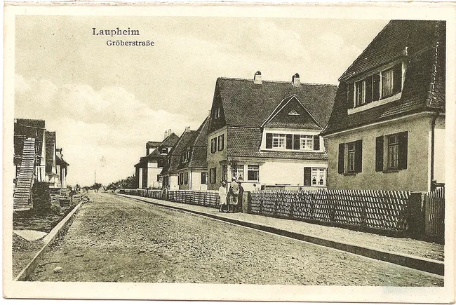 Der Fotograf steht an der Einmündung der Adolf-Gröber-Straße in die Anna-von- Freyberg-Straße. Der Blick geht in Richtung Albert-Magg-Straße. Heute führt diese Straße direkt auf das Dreifaltigkeitskloster zu. Die Postkarte wurde am 21.12.1932 abgestempelt.