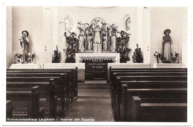 Liebe Mutter, übersenden Dir eine Karte vom Krankenhaus Laupheim, welches als Reservelazarett eingerichtet wurde. Es ist halb für Arbeiter und halb Privat. Leider habe ich keine Gesamtansicht bekommen. Schade daß ich nicht gesund bin wäre nächsten Sonntag nach Weißenhan gefahren. Mit meinem Befinden bin ich noch nicht zufrieden habe es durch die Fahrt sehr verschlechter. Auf Wiedersehen Ludwig