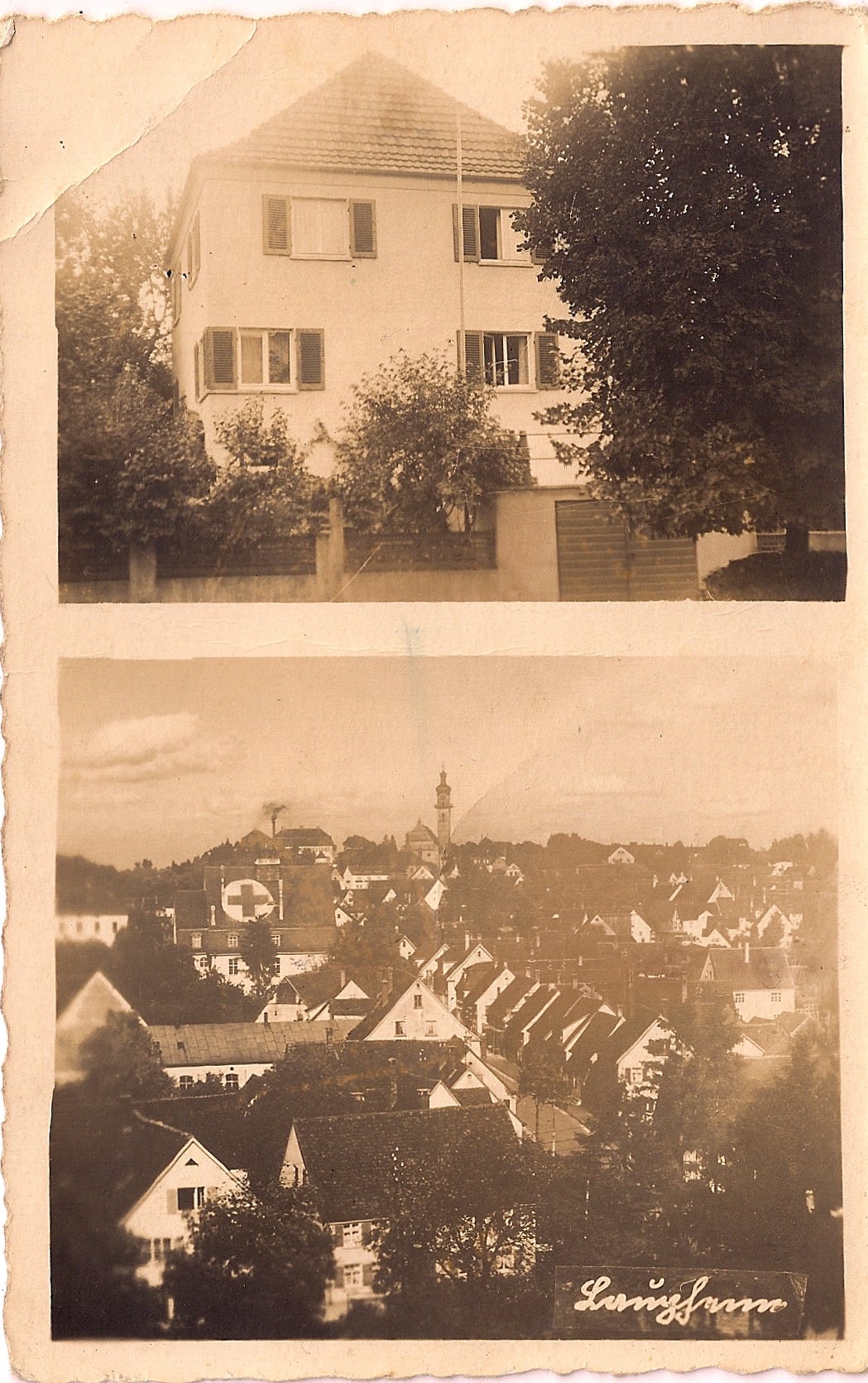Dieses Haus („Haus Weber“) steht am Lindenplatz 14. Von der Perspektive des damaligen Fotografen aus gesehen kann man heute fast keine Veränderung feststellen.