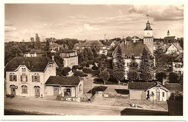 Rechts vom Bahnhof steht noch „'s Lädele“. Das war ein weit und breit beliebter Kiosk.