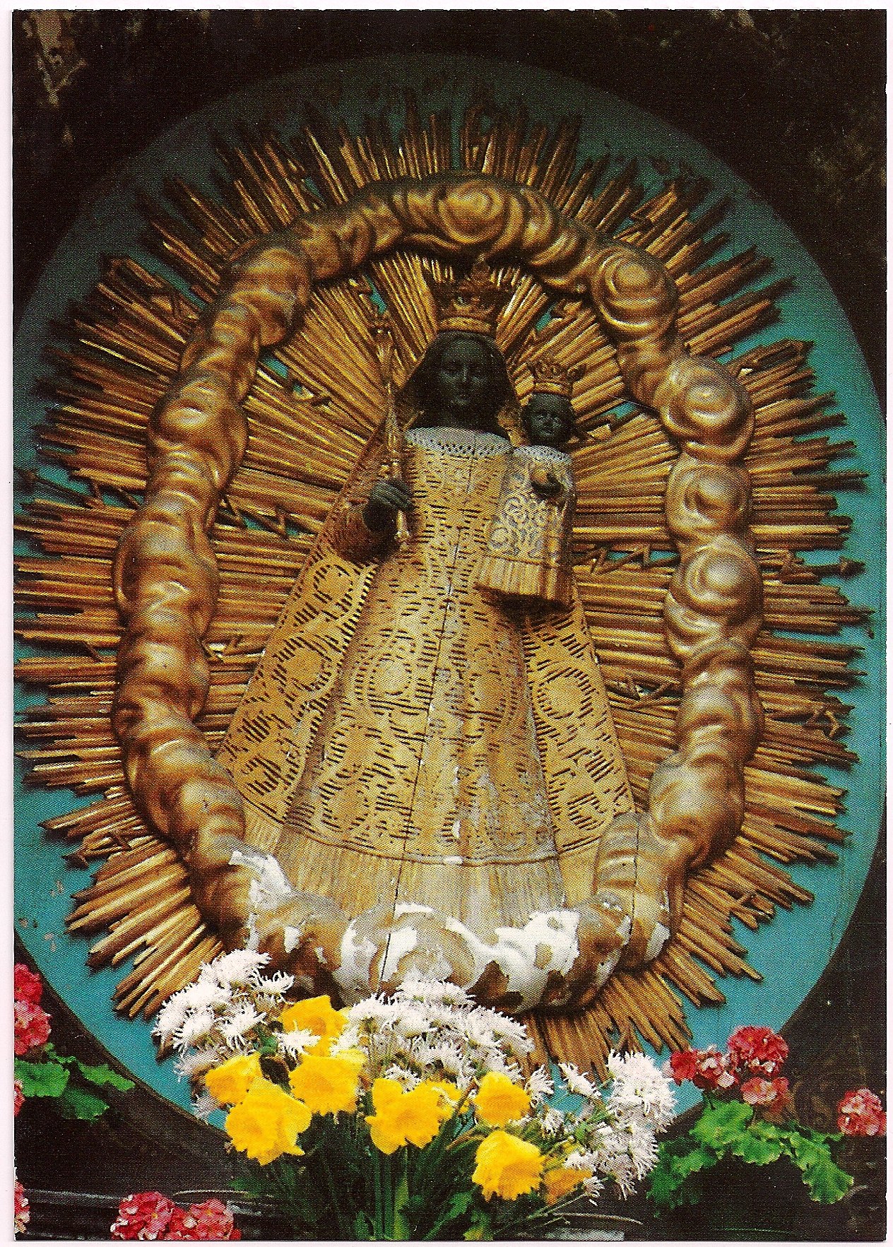 Diese „Schwarze Madonna“ steht in einem Bildstock am Rande des Laupheimer Ölbergs. Sie ist eine genaue Nachbildung der „Schwarzen Madonna“ in Einsiedeln/Schweiz.